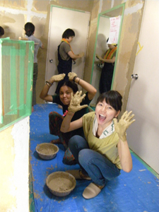 事務所のご近所さん、沖縄居酒屋&シェアハウスのJam Houseさんの第2拠点「Jam House天照」にて、珪藻土の塗り壁ワークショップを行いました。