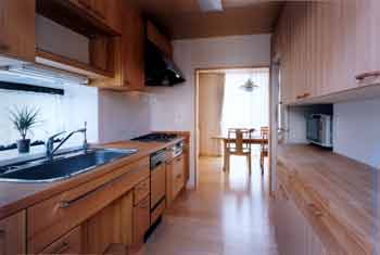 キッチン東側に朝日の入るダイニングで朝食を。 |