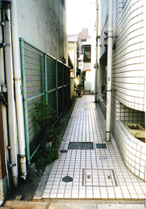 門扉をつけ、フェンスをルーバー壁に替え、アール壁にはガラスブロックを取り付け、明るく清潔感のあるアプローチに変身。